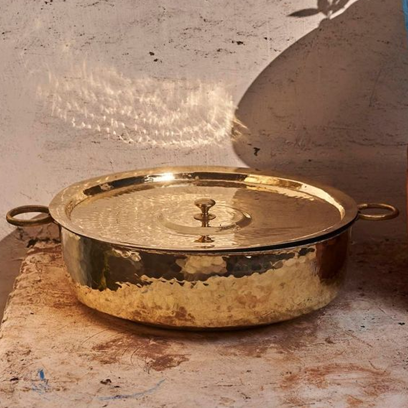 Introducing our premium Handmade Copper Lagan with Kalai (tin coating) on the inside—a must-have for your kitchen. Perfect for preparing a range of delectable dishes like biryani, pulao, and fried rice, the Kalai tin coating ensures safe, non-reactive cooking, preserving the authentic flavors and nutritional value of your food. The Copper Lagan is available in 4 different sizes (size chart & details given on product page).Our biggest jointless variant measuring approximately 14.5 inches perfect for Large Families & restaurant kitchen and weighing 3.8-4.0 kg, and a smaller variant measuring around 11.0 inches and weighing 1.8-2.0 kg. Each variant includes a sturdy brass lid weighing 800-850 & 500-550 grams respectively designed to lock in flavors and moisture. Enhance your cooking with this exquisite blend of tradition and quality, perfect for both preparation and serving. When preparing food, the Copper Lagan excels in maintaining a consistent temperature, which is crucial for cooking the rice evenly while allowing the flavors of the marinated meat, spices, and herbs to meld together beautifully.