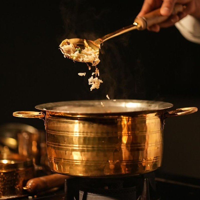 - Superior Heat Conductivity: Copper is renowned for its excellent heat conductivity, which ensures even heat distribution across the entire surface of the lagan.The even heat distribution prevents hotspots, reducing the risk of burning and ensuring that every grain of rice is cooked to perfection.